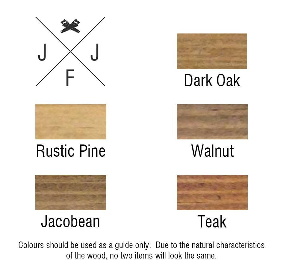 Each table is hand crafted, Coloured with the stain of your choice and meticulously finished with a beeswax polish. This ensures that the table will last year's to come and maintain its luxurious and hard wearing glaze.