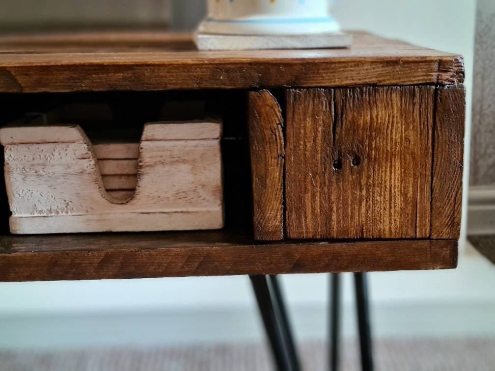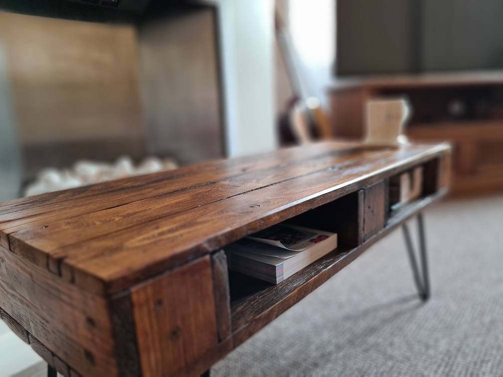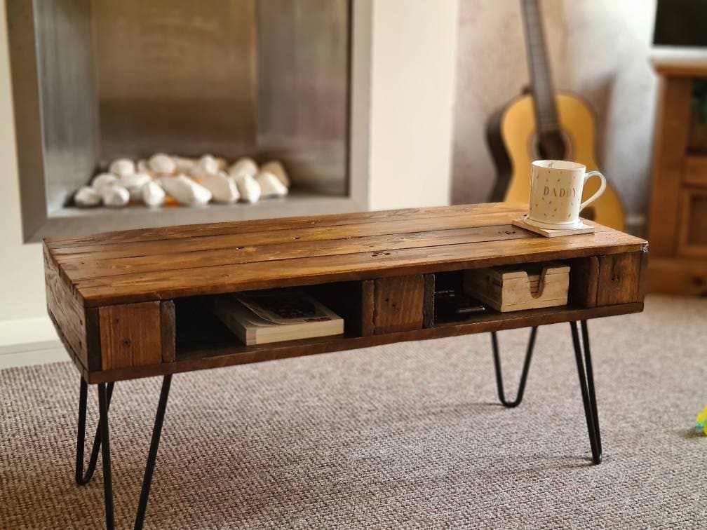 Introducing our rustic handmade coffee table with hairpin legs, a true centrepiece for your living space. This exquisite piece combines the warmth of rustic charm with the sleekness of hairpin legs, creating a perfect balance between modern and vintage aesthetics.